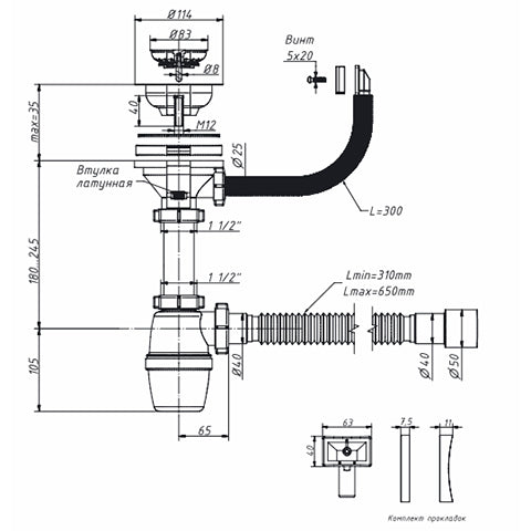 А-40079 Сифон бутылочный 3 1/2"х40 мм, с переливом и гибкой трубой 40-40/50